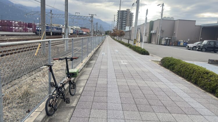 二駅という距離感で自転車での移動もアリですが、西条と新浜を結ぶ道は交通量が多いので、折り畳み自転車は輪行がおすすめです。