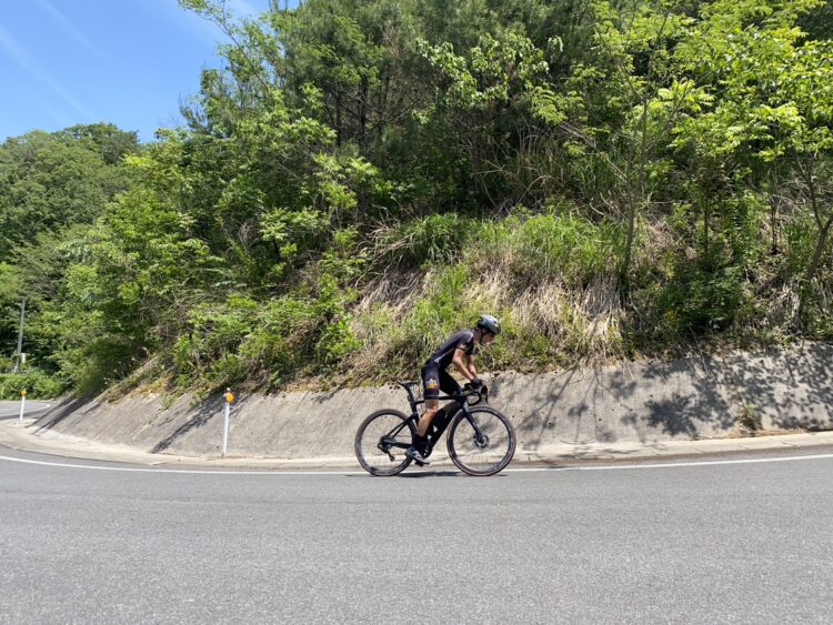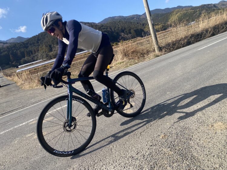 普段のスピードに比べて+3km/hくらいの感覚で、スピードが乗ってからの伸びが気持ち良い